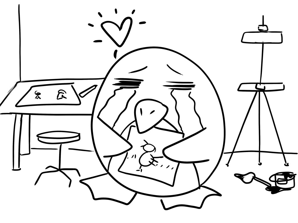 Men. Hörrni. Idag, var dagen inte särskilt bra, MEN! Efter lite mer än 1h utzooning så kände jag bara ”Jag MÅSTE hämta mitt skissblock”. Längtan var för stor. Jag gick (att springa är ju en överdrift förtillfället nu haha) så snabbt jag kunde mot ateljén och bara stod där inne och kände. Kände in. Blev tårögd. Oj, vad jag saknat den. Saknat min lilla skaparbubbla. Jag är ju så otroligt glad över vårt lilla mirakel, vår miniminis som snart ska komma, men oj vad jag längtar efter att få tillbaks min kropp och börja skapa igen. Kunna röra mig som jag vill medan jag målar. Stå i obekväma och oergonomiska ställningar för att jag är så inne i målandet. Det saknar jag. Och längtan blev väldigt påtaglig därinne, så det blev att ta fram mitt skissblock och tecknade upp en av mina grovskisser till en finskiss på ett akvarellpapper. Ni kommer få se henne snart hoppas jag. Kanske till och med innan bebis kommer, om kroppen samarbetar med mig.